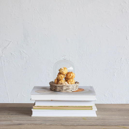 Decorative Hand-Woven Rattan Pedestal with Braided Rim, Natural