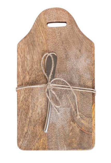 Mango Wood Cheese/Cutting Board w/ Handle & Canape Knife, 4 Styles