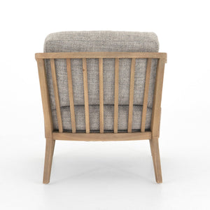 Spindle detailing for an airy look, with angular wooden arms and cleverly positioned legs, plus feather-blend cushioning covered in a textural performance-grade upholstery exclusive to Four Hands.
