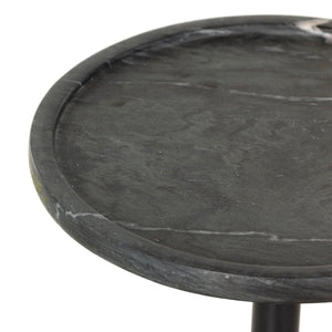 Layer in a sculptural element anywhere. A dramatically shaped base of black marble supports slim iron piping and rounded tray-style tabletop - the perfect place to perch a drink or favorite book.
