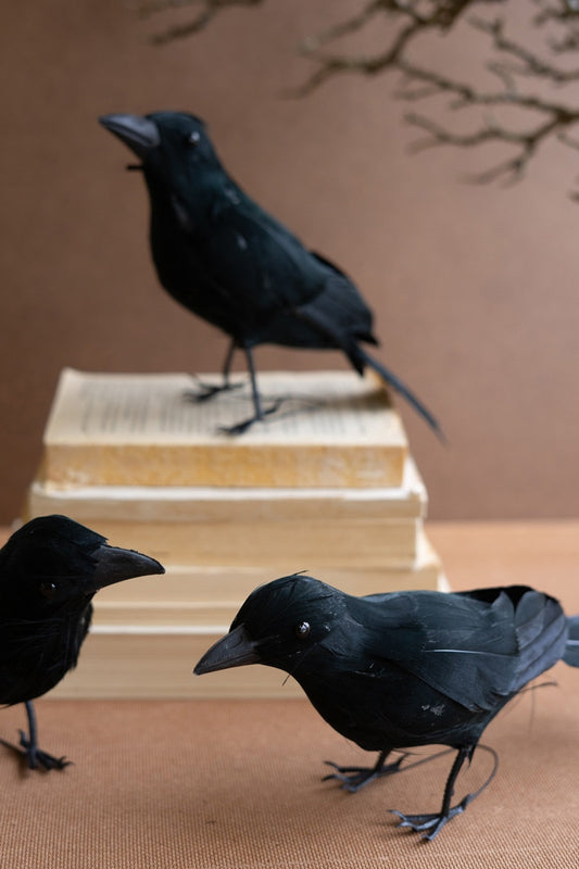 Crow Sculptures with Black Feathers - 3 Styles