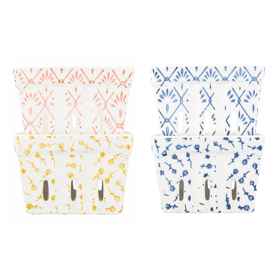 Each of these colorful stoneware berry baskets is perfect for washing and serving fruits or veggies. Comes in 4 styles.