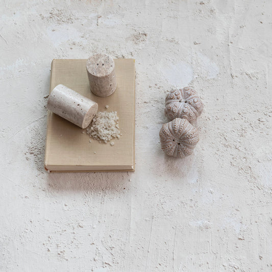 Travertine Salt & Pepper Shakers - Set of 2 (Each One Will Vary)
