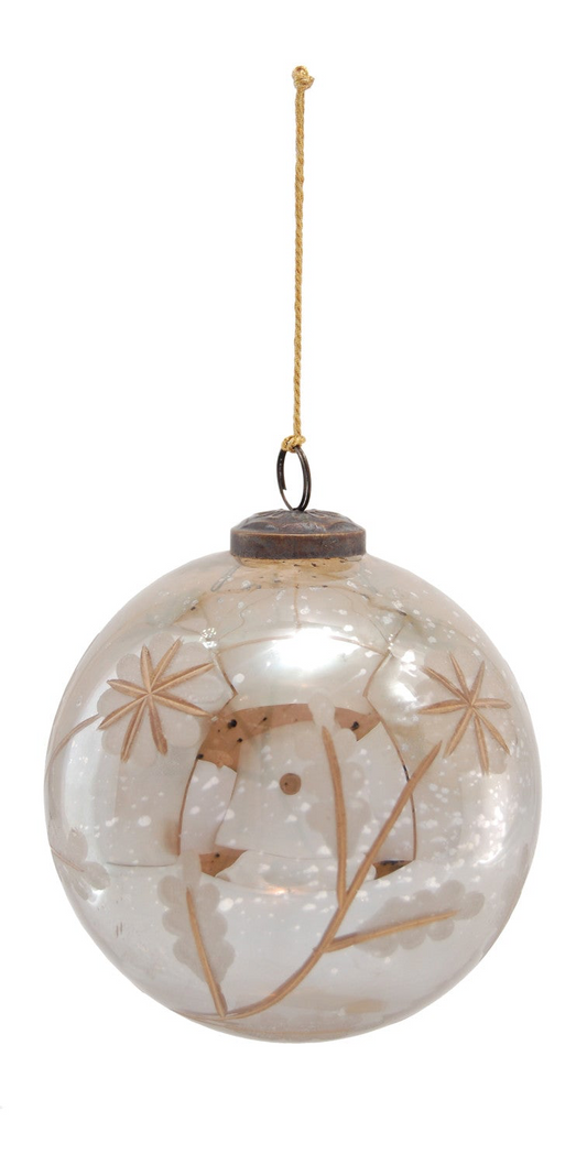 Etched Mercury Glass Ball Ornament with Design, 2 Styles