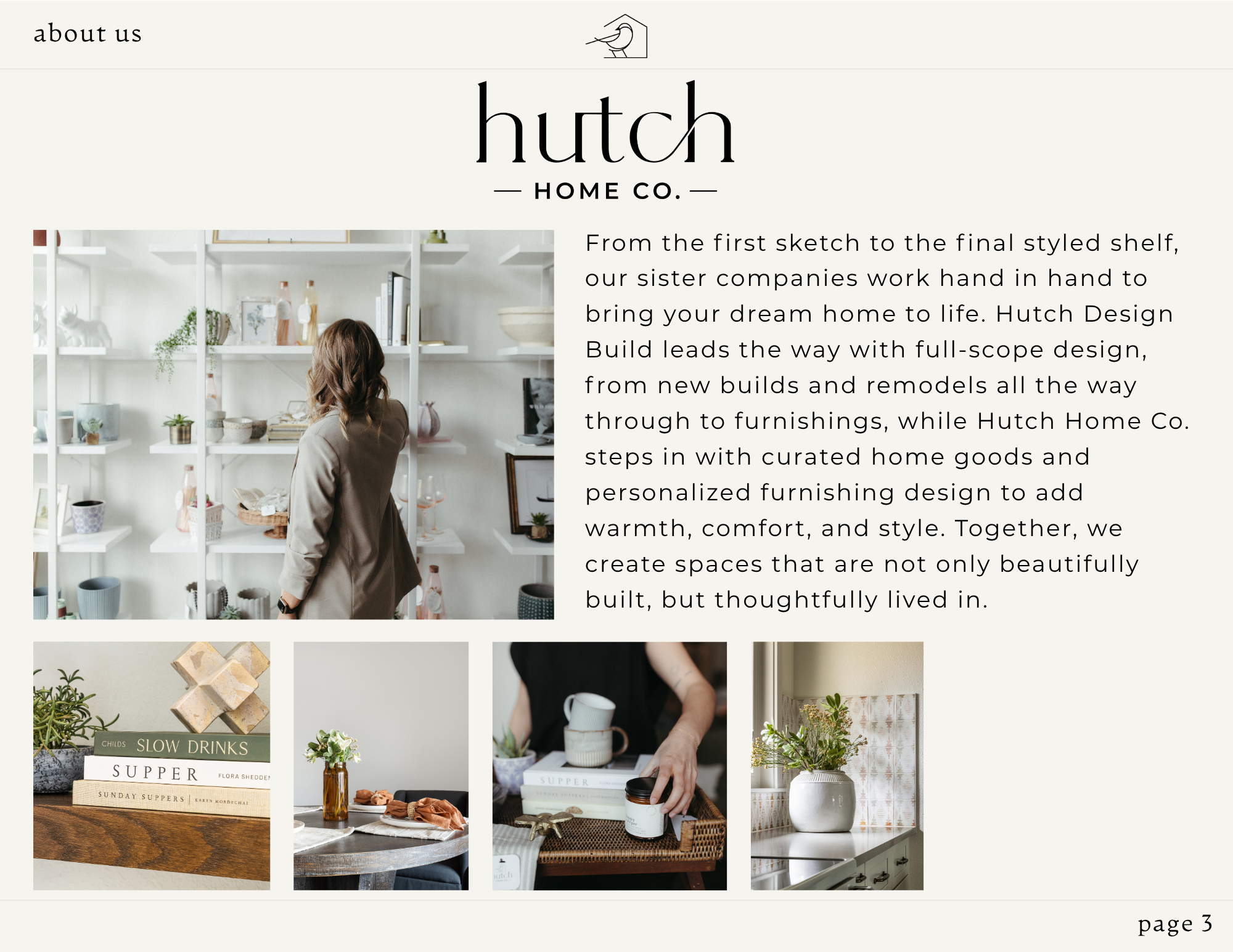 From the first sketch to the final styled shelf, our sister companies work hand in hand to bring your dream home to life. Hutch Design Build leads the way with full-scope design, from new builds and remodels all the way through to furnishings, while Hutch Home Co. steps in with curated home goods and personalized furnishing design to add warmth, comfort, and style. Together, we create spaces that are not only beautifully built, but thoughtfully lived in.