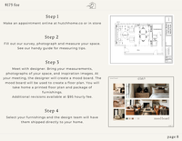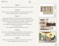 At Hutch Home Co, we offer complimentary services for any customer looking for furnishing design direction. Simply stop in store or inquire via email regarding custom furniture solutions. This services includes: