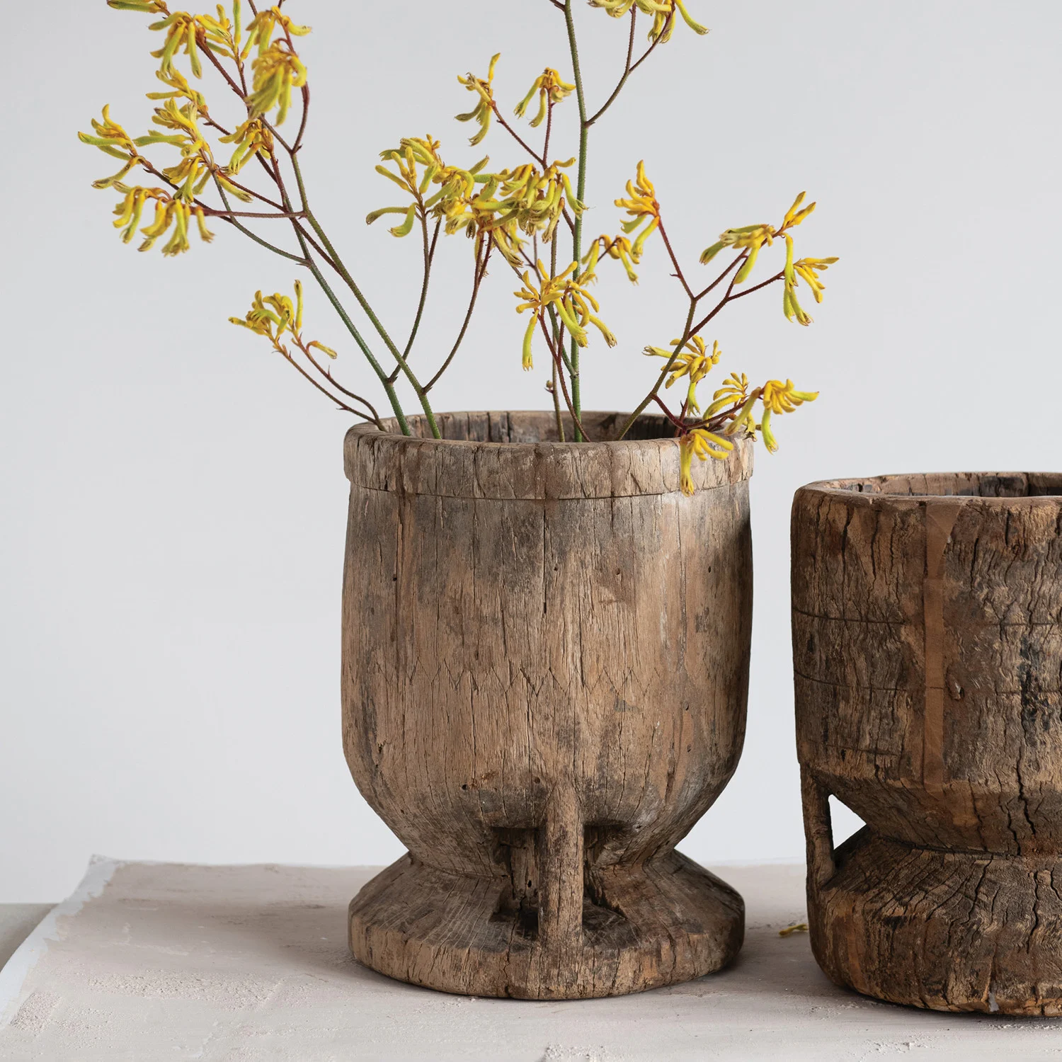 Bring a touch of rustic charm to your home with the Found Antique Mortar Bowl. Crafted from textured wood, each bowl features unique variations that add character and warmth to any space. Perfect as a decorative piece or for serving, this natural bowl brings a cozy, found-object feel that complements a variety of styles.