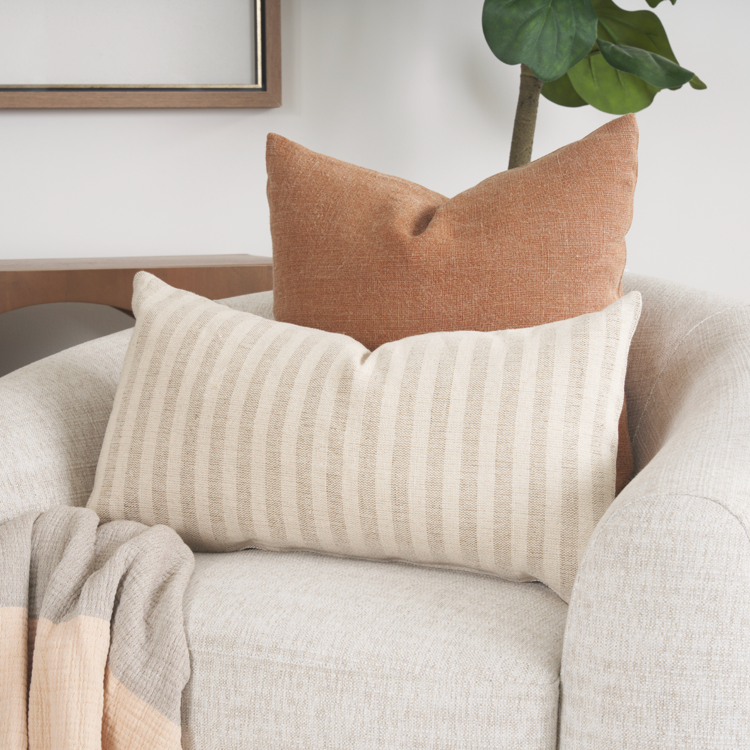 The Jace Pillow, sized 14"x26", features a refined linen-cotton blend cover paired with a high-quality down alternative insert. This combination ensures a soft, breathable surface complemented by durable, plush support, making it an elegant addition to elevate any living space with understated luxury.