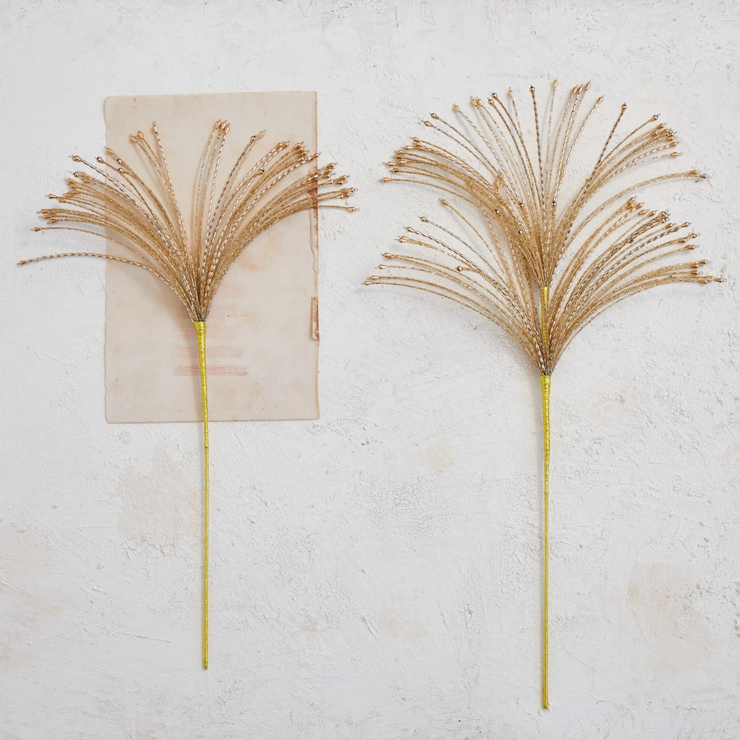 This metal and glass beaded spray is a lively and sparkling piece that will enhance any space. The spray features metal, glass, and acrylic beads that have a gold finish and a soft texture, creating a chic and elegant effect. The spray measures 15 inches in length, 15 inches in width, and 22 inches in height. The spray is a versatile and stylish piece that can be placed in a vase, basket, or wall, or for making a wreath or bouquet.