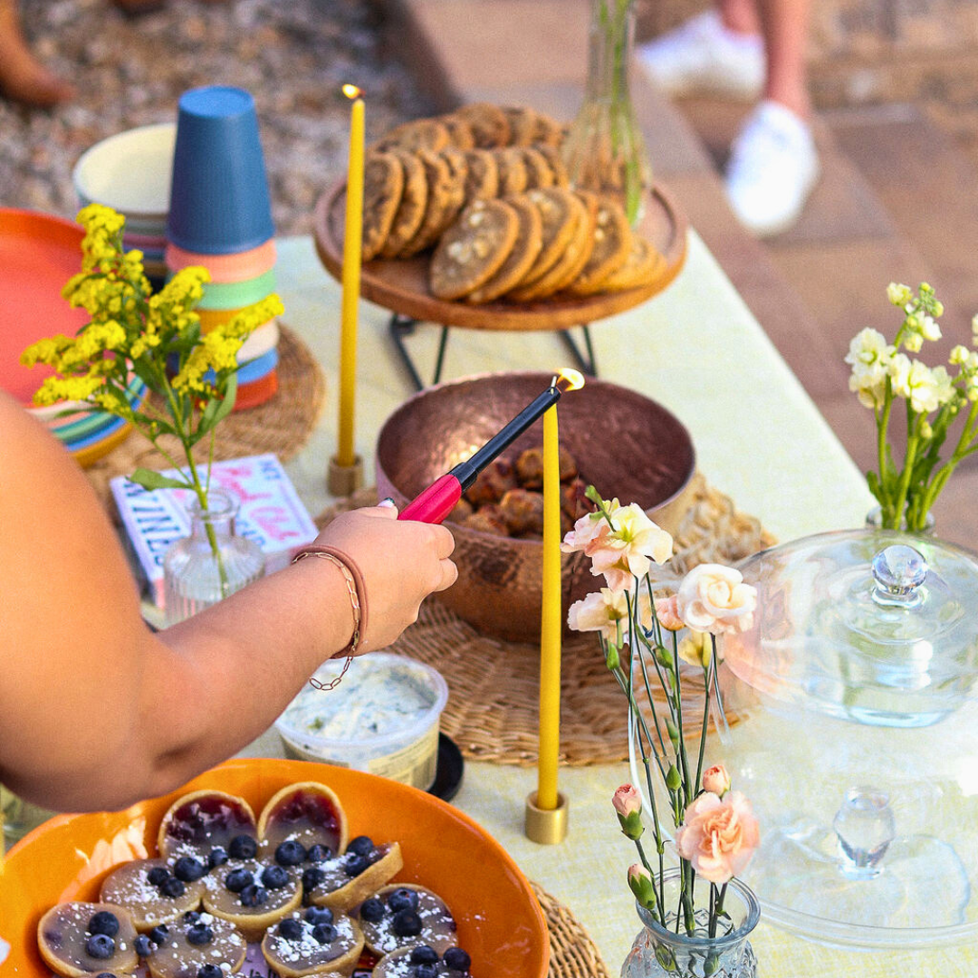 Slender and tall, our thin taper candles are hand-dipped in pure beeswax and measure 1/2" at the base and 12" in total length. These narrow candlesticks are perfect for meditation, prayer, reflection and ceremony. They're beautiful as a group, embedded in a bowl of sand, or all on their own. The fit easily into a variety of chime and slender taper holders. Sold in gorgeous, rootsy bundles of 5 pairs — 10 thin taper candles. Burn time: 6 hours per candle, 30 min per inch. Care: - Always place taper candle in a holder and use caution — holder may become hot at the end of the burn. - To avoid drips, trim the wick to 1/4" before first light and do not trim after that (the long wick prevents drips). Burn out of drafts and use a snuffer to gently extinguish the flame. - These thin candles are delicate and malleable. They can be bent into a variety of shapes, if desired, but please note this may cause them to drip or burn unevenly.