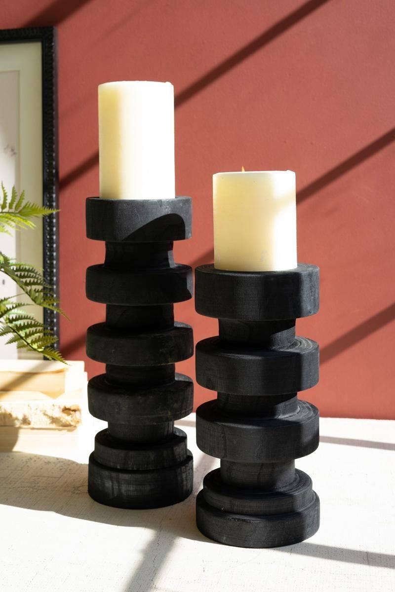 Place these black wooden turned candle holders front and center in your dining space or gift them to your favorite newlyweds. A touch of black suits any style and this groovy duo puts the twist in elegant decor. Use them for candles or bunches of bloom