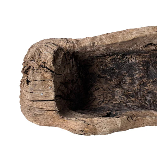 Founded in the Beijing region, the Siheyaun home still serves as a template for Chinese architecture. However, some of the more primitive relics of daily living are far outmoded and finding new life as decorative objects in modern homes. Constructed from thick wood to withstand daily use, the vintage Siheyaun Troughs are hand-carved, rectangular wood basins that extend approximately nine inches in length. Use these found objects on bookshelves, as a planter or as wall art. Size, shape and condition vary.