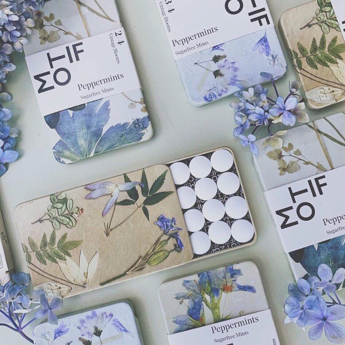 Experience the refreshing taste of Vintage Blooms Sugar Free Peppermints, featuring delicate pressed floral designs on charming tins. This collection blends vintage elegance with modern convenience, making it a perfect choice for a fresh and stylish treat anytime.